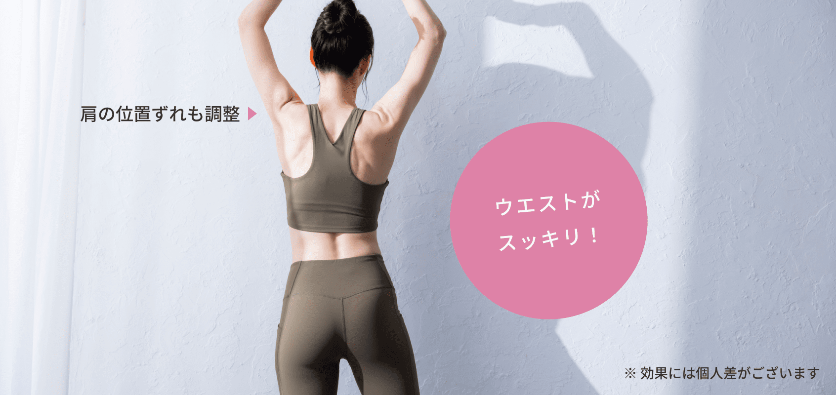 また、同時に骨盤調整によってずれていた肩の位置を直し、肩の高さが揃いました。